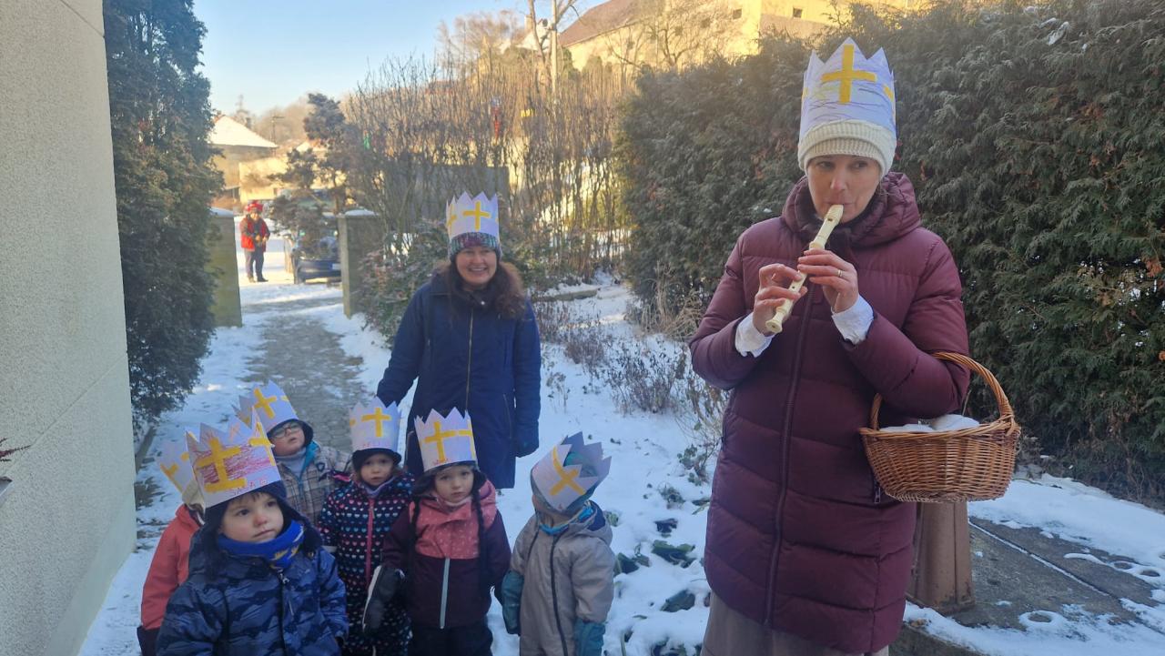 Děkujeme za přání dětem z našich školiček, které dnes přišly na obecní úřad. Tradičně to byly děti a paní učitelky z Fantazie v sokolovně, prvně se u nás zastavily i děti ze školičky Little Kingdom na návsi.