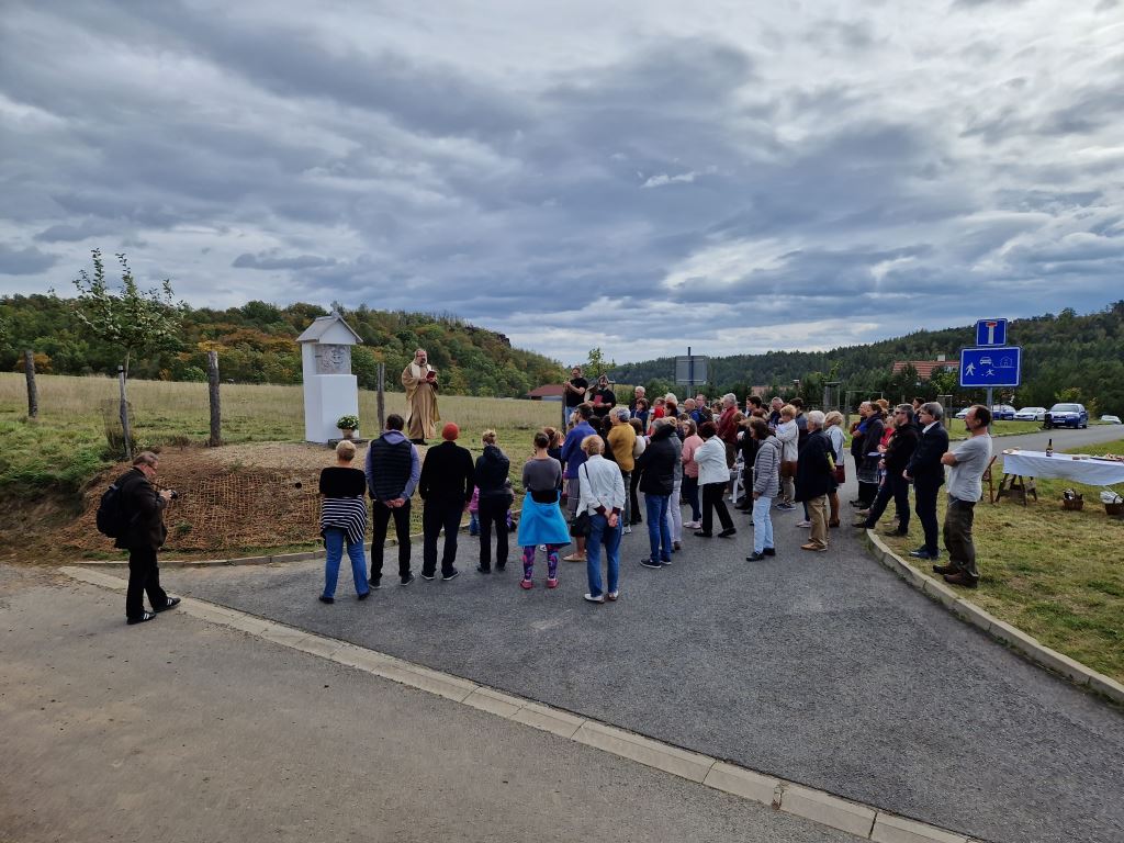před pár dny proběhlo požehnání naší nové kapličce cestou na Holý vrch. Vybudoval ji únětický občan Karel Štícha, reliéf Svaté rodiny vytvořil akad. sochař Petr Váňa, kapličce i celé obci požehnal místní farář Petr Bubeníček. Slavnostní akt si užila řada místních občanů, přinášíme z akce pár fotografií. Všichni ostatní jsou srdečně zváni, aby si kapličku prohlédli třeba při procházce na Holý vrch. Z mozaikové lavičky naproti ní je krásný výhled.