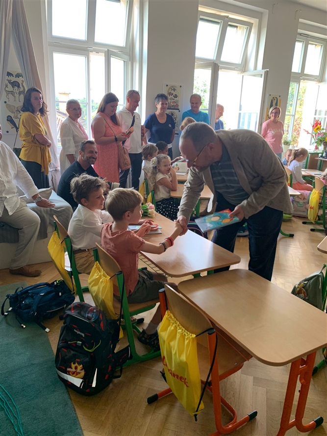 dnešek byl velkým dnem pro všechny žáky a studenty. Naše ratolesti šly poprvé do školy a školky – v naší obci do ZŠ a MŠ Hnízdo. Doufáme, že se dětem první den líbil a přejeme nejen prvňáčkům, aby jim elán vydržel. My za obec jsme s místostarostkou Bárou Pazourovu uvítali tradičně děti v první třídě, které od obce dostali knihu „první čtení“.